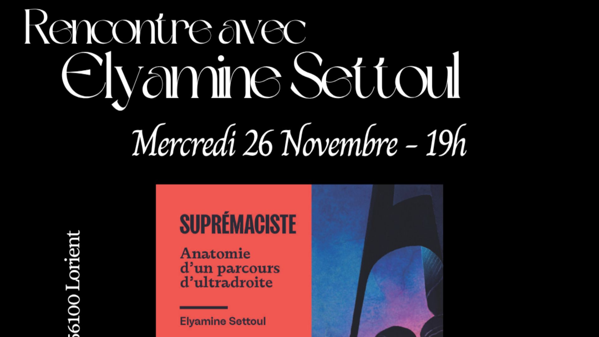 Rencontre-dédicace le 15 novembre 2025 à la librairie Le Tiers-Mythe (Paris) avec Elyamine Settoul, auteur de Suprémaciste- Copie