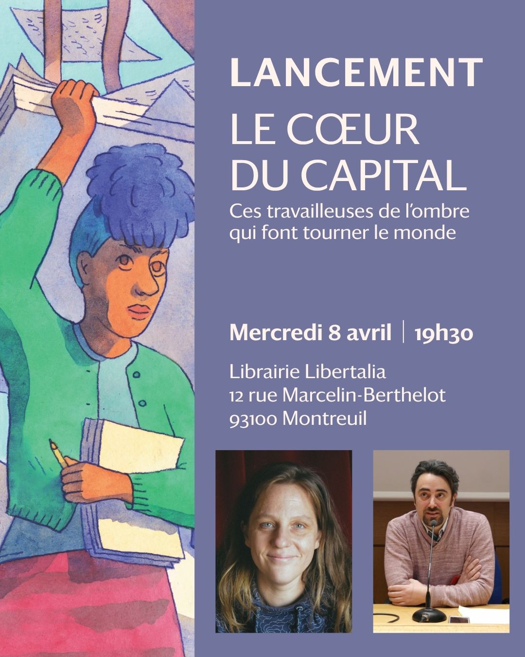 À l’occasion de la parution de Le Coeur du capital. Ces travailleuses de l’ombre qui font tourner le monde, de Fanny Gallot et Hugo Harari-Kermadec, Université Paris Cité Éditions organise une soirée de lancement en partenariat avec la librairie Libertalia, à Montreuil, le mercredi 8 avril à partir de 19h30.